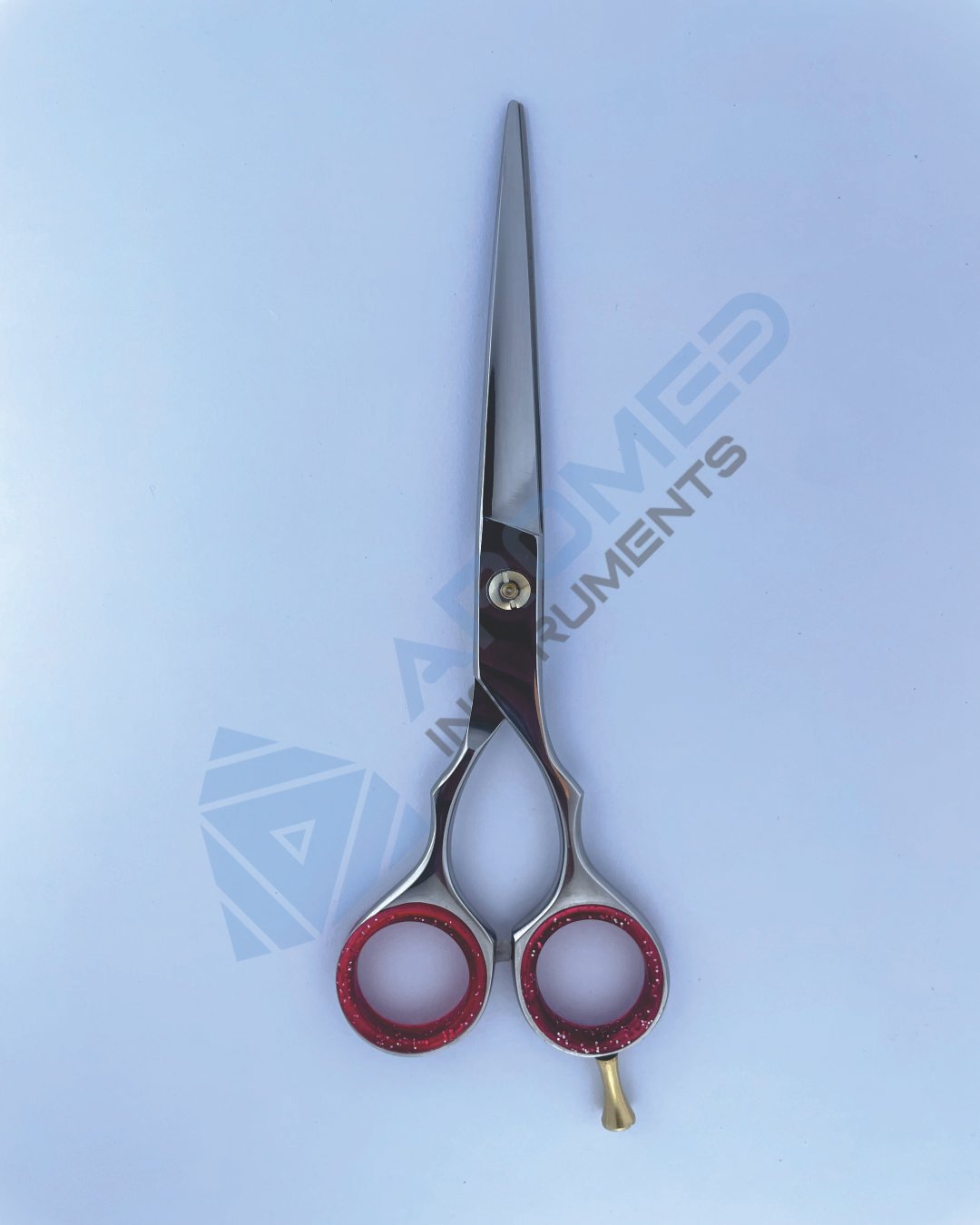 “Elite Precision Hair Cutting Scissors – Red Sparkle Grip”